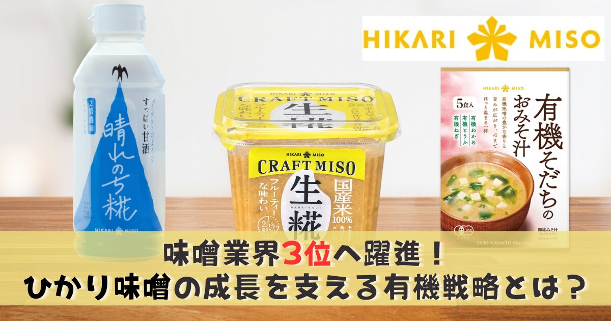 日本の味噌市場はマルコメやハナマルキといった大手がシェアを握る中、ひかり味噌は 業界3位 のポジションを確立。市場が縮小を続ける中でも、オーガニックや減塩といった付加価値商品に注力し、14年連続で売上を伸ばすという異例の成長を遂げています。